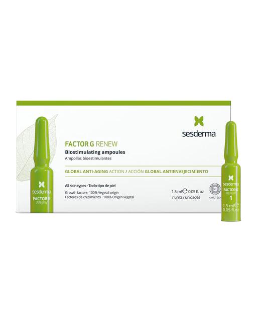 Firmeza de la piel para lucir más joven en 7 días. El paso del tiempo ralentiza la actividad de las células de la piel, disminuyendo la producción de colágeno y elastina. Como consecuencia, aparece la flacidez y las arrugas. ¿Y si rejuvenecer tu piel en solo 7 días fuera posible? Lucir una piel rejuvenecida en tiempo récord es posible. 9 Factores de crecimiento. 7 Beneficios para una piel rejuvenecida. Potente acción rejuvenecedora. Ideal como tratamiento de choque. ¿Conoces el poder rejuvenecedor de los factores de crecimiento? FACTOR G RENEW Ampollas bioestimulantes reafirma al 100% la elasticidad de tu piel. ¡A un solo clic! Pequeñas explosiones de belleza con alta concentración de activos. Este producto es tu nuevo plus de belleza, con efectos inmediatos y duraderos para la piel desde la primera aplicación.