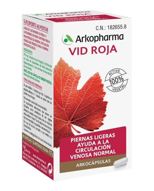 Las cápsulas dietéticas Vid Roja Arkopharma están formuladas para contribuir a unas piernas ligeras y ayudar a la circulación venosa normal. Estas cápsulas son recomendadas para adultos y se presentan en un formato de 45 cápsulas.