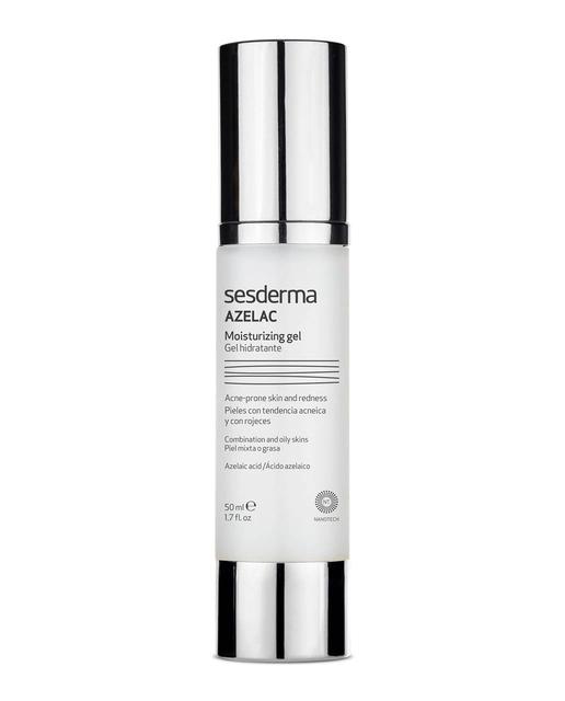 El Gel Hidratante Sesderma está diseñado para tratar pieles con rosácea, rojeces, couperosis y/o tendencia acneica. Este gel hidratante es ligero y cuenta con una excelente tolerancia, gracias a su pH 5.5. Azelac Gel combina las propiedades del ácido azelaico con la acción hidratante de la glicina. Su formulación tiene una acción calmante y antirradical, lo que ayuda a combatir el enrojecimiento y las impurezas asociadas a la couperosis. Además, ofrece una acción seborreguladora, que disminuye la secreción de sebo y elimina las espinillas. Este gel también inhibe la síntesis de tirosina, homogeneizando el color de la piel, y posee propiedades antienvejecimiento y antiarrugas, aumentando la hidratación y la elasticidad cutánea. La fitoesfingosina, un lípido natural de la piel, forma parte de la mayor parte de las ceramidas y tiene una acción natural que reduce la irritación. El Silybum marinum proporciona una acción calmante, suavizante y antioxidante, camuflando el enrojecimiento en pieles con tendencia a la couperosis.