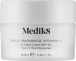 MEDIK8 DAILY RADIANCE VITAMIN C CREMA SPF30 es una crema facial innovadora que combina la protección solar con los beneficios de la vitamina C. Formulada para proporcionar luminosidad y unificar el tono de la piel, esta crema es ideal para el uso diario, ayudando a combatir los signos del envejecimiento prematuro y la hiperpigmentación.