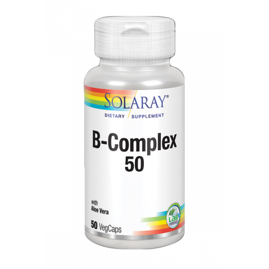 Solaray B-Complex 50 es un complemento alimenticio que contiene una mezcla de vitaminas del grupo B de alta biodisponibilidad. Esta combinación de cofactores resulta beneficiosa para la salud del sistema nervioso y reduce la sensación de fatiga de forma rápida y eficaz. Además, este complejo contribuye a la salud cardiovascular, al buen funcionamiento del sistema digestivo y mejora la calidad de la piel, cabello y uñas.