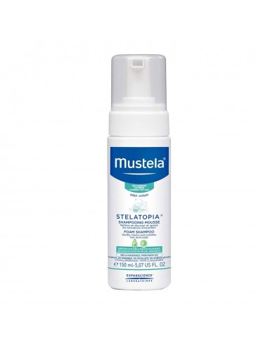 El Champú Mousse Stelatopia, en espuma y sin perfume, está especialmente diseñado para bebés y niños con piel atópica, desde el nacimiento*. Su fórmula contiene un 99% de ingredientes de origen natural. No pica en los ojos y se aclara fácilmente. *Bebés salidos de neonatología